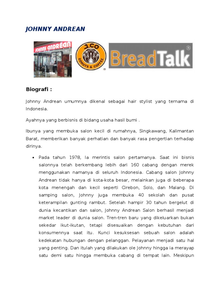 Johnny Andrean Rambut Potongan Rambut 2021, Atas. 42+ Trend gaya rambut modis 2021. Harga highlight rambut di Johnny Andrean Salon. Harga di Johnny Andrean Salon Friseur. Jika Anda ingin memotong rambut, pasti pergi ke salon Johnny Andrean karena harganya terjangkau. Meskipun bisnis salon adalah Moncer, pria yang lahir di Singkawang, Kalimantan Jeli melihat bisnis lain, yaitu di bidang kuliner.